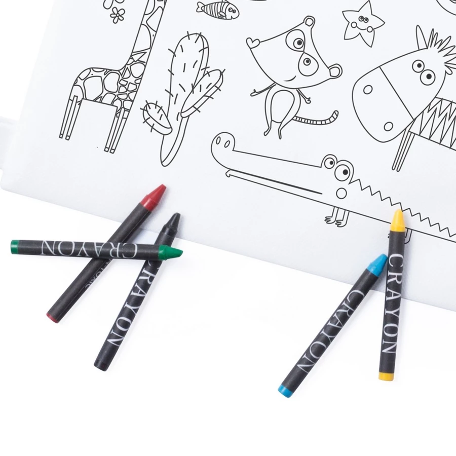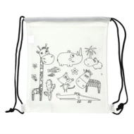 Backpack of non-woven in white color especially designed to be colored with crayons. Includes 5 cylindrical body crayons in varied colors. With self-closing strings in black color and reinforcement in the corners.