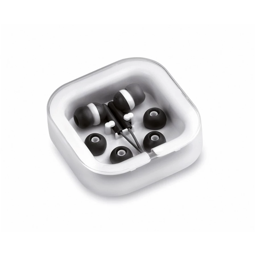 Handy and comfortable earphones with a casual two-tone design, 3.5mm jack connection and matching color cable. Available in a wide range of colours. Presented in an elegant design case with spare ear pads.