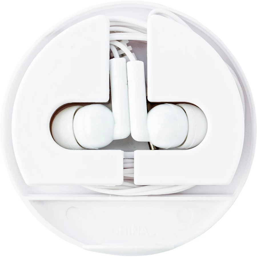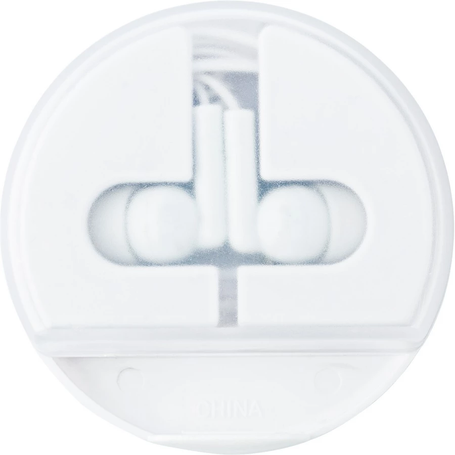 Earphones (cable approx. 124 cm) supplied in matching coloured plastic case, which can also be used as tablet or mobile phone holder