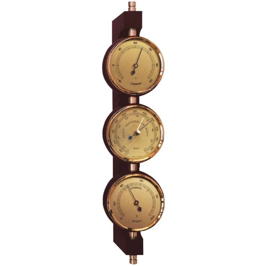 Ekskluzywna Stacja Pogody Fischer - Barometr Higrometr Termometr - Mosiądz Mahoń – 7894-22 (NMT-962804)