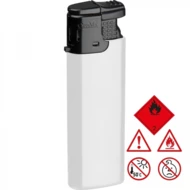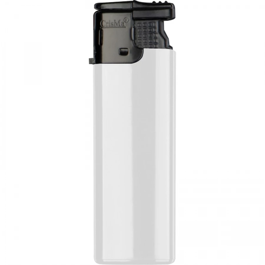 Refillable electronic lighter with black head and adjustable jet flame. Your advertising will be printed on one side.