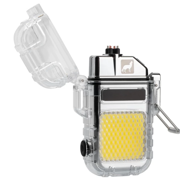 Schwarzwolf electrical rechargeable lighter with a COB flashlight. The lighter works on the basis of electric discharge instead of a flame. The flashlight has a three different modes of lighting. It is charded via a USB cable that is included in the package. The lithium battery capacity is 300 mAh. The charging time of lighter is 1–2 hours and full lighter lasts approximately one week or after 100–200 sparks.