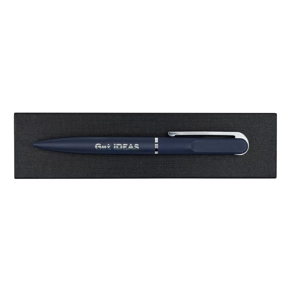 Elegancki długopis o przyjemnym w dotyku, satynowym wykończeniu. Pakowany w upominkowe pudełko. Wkład w kolorze niebieskim.