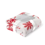 130x160cm blanket in an original red Christmas design with white motifs. In soft and warm polar fleece material of 200g/m2 with antipilling treatment. Presented with silver colored cardboard and matching color ribbon ribbon in soft polyester.