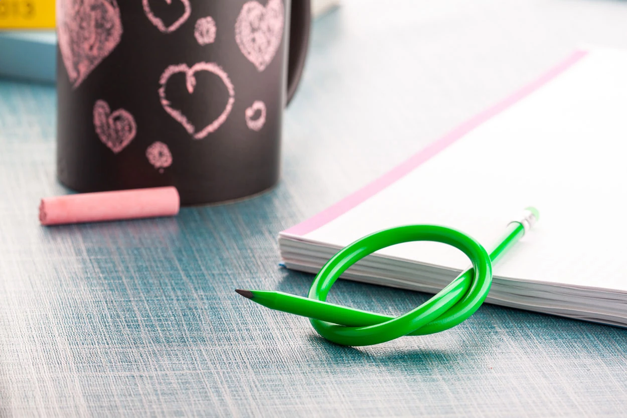 Flexible pencil with eraser, made of special elastic plastic, unsharpened.