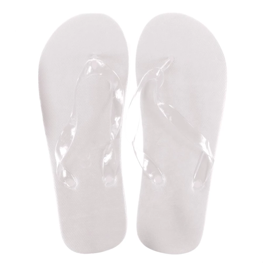 Pair of flip flops made of EVA and PVC. Sole made of durable EVA for high durability and ergonomic straps made in matching color PVC. Available in a range of vibrant colours to suit every style. In sizes 36-38 and 42-44.