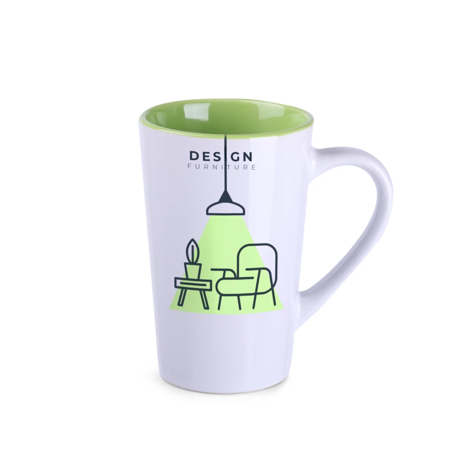 Classic mug with a trapezoidal shape and high walls. It comes in six interior colors to choose from. Perfect for large and demanding decorations.