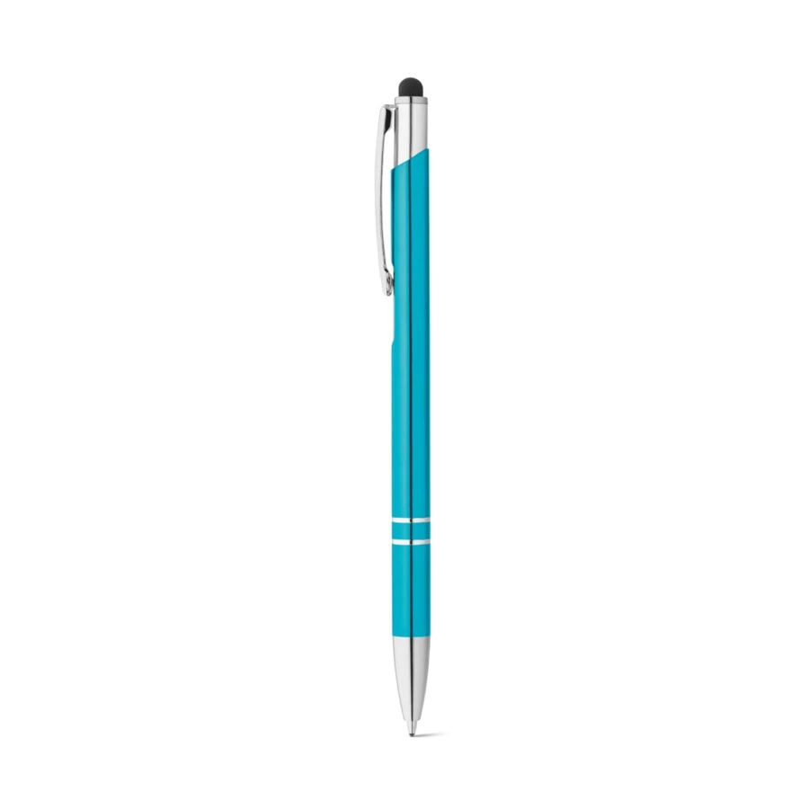 Aluminium ball pen with touch tip and clip. Blue ink. ø8 x 142 mm