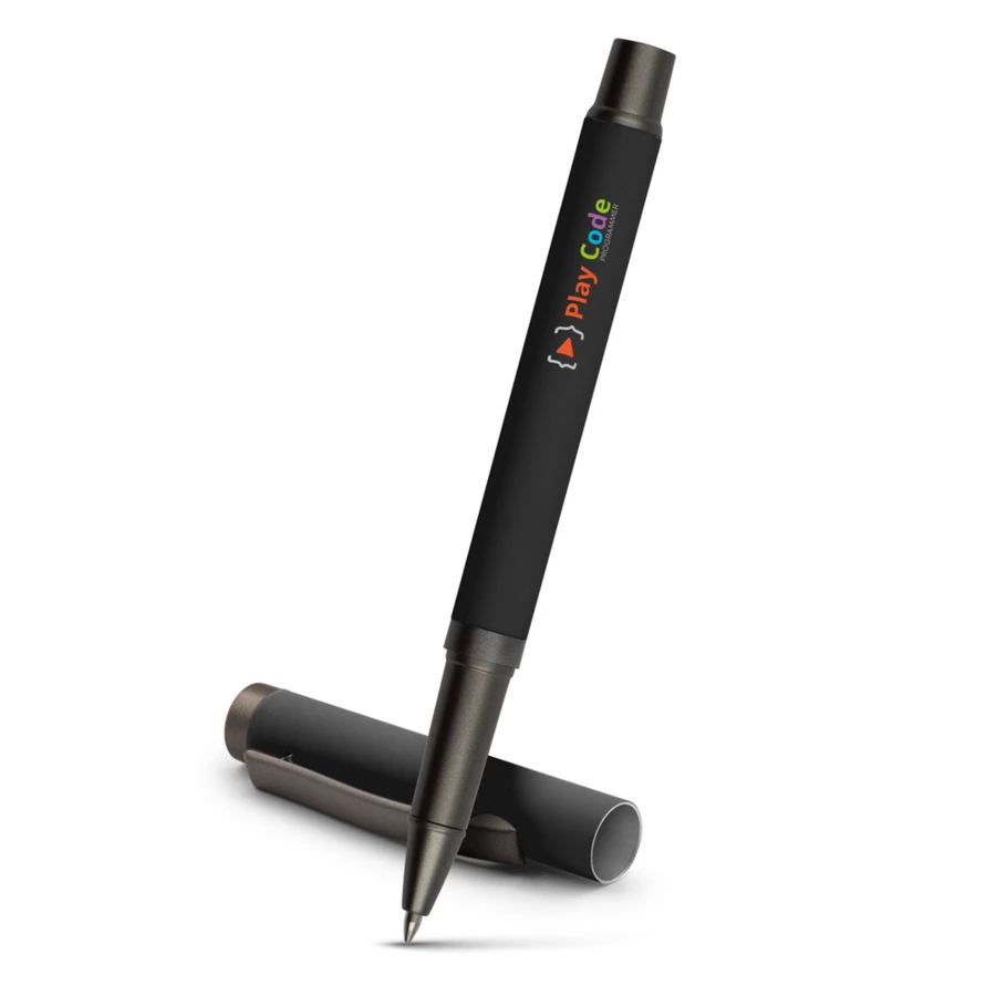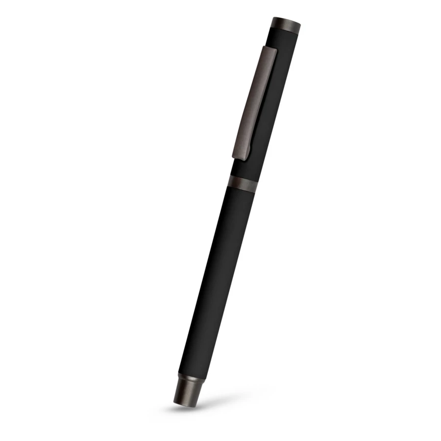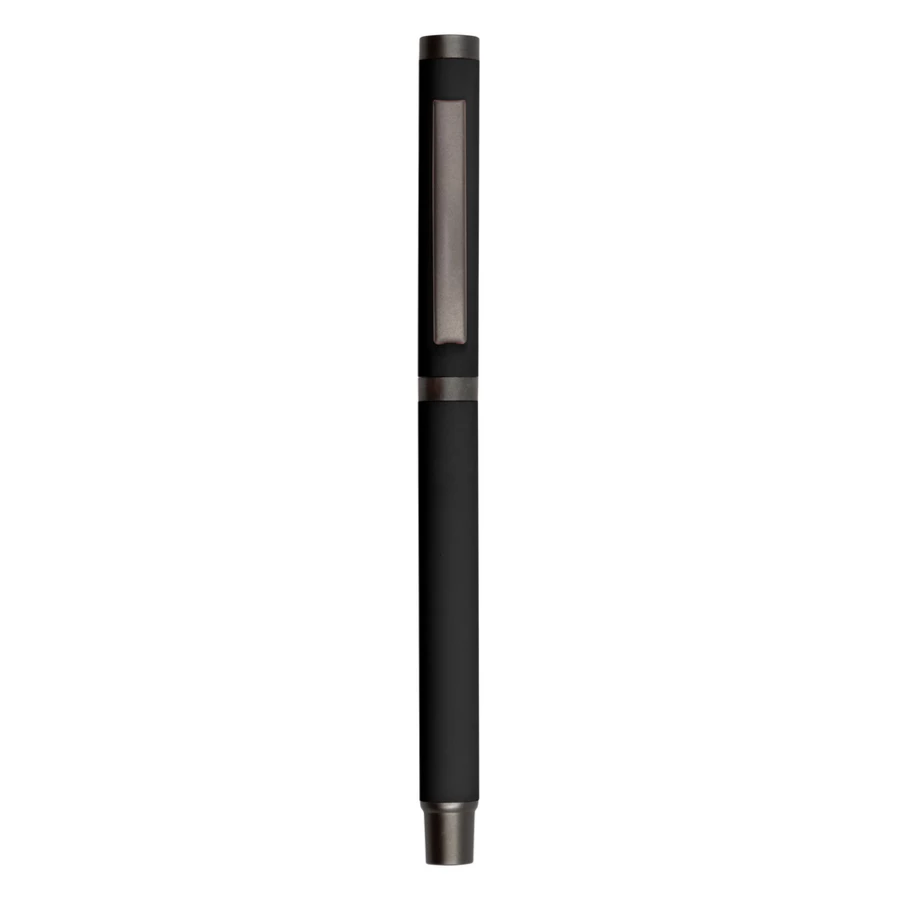 Ball pen with rubber finishing and matching cap with grey clip, gel ink 0.7 mm, writing length ca. 500 m