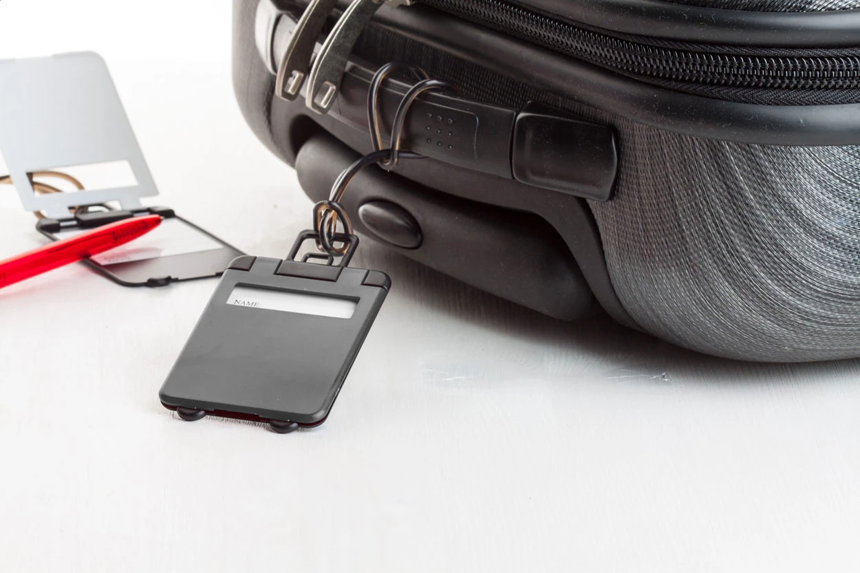 Plastic luggage tag.