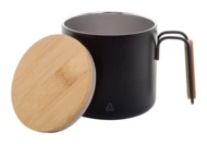 Double-wall, recycled stainless steel thermo mug with bamboo lid and handle. 300 ml.