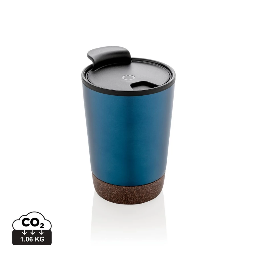 Start your day with your favourite beverage in this double wall coffee mug with recycled plastic inner and unique cork detail. Keeps your drinks warm for up to 3h and cold up to 6h. Made with GRS certified recycled materials. The inner is made from 100% GRS certified PP. GRS certification ensures a completely certified supply chain of the recycled materials. Total recycled content: 52% based on total item weight. BPA free. Capacity 300ml. Including FSC®-certified kraft packaging.