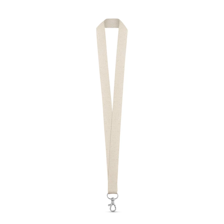 100% cotton lanyard with metal carabiner. Made in Europe. 20 x 480 mm