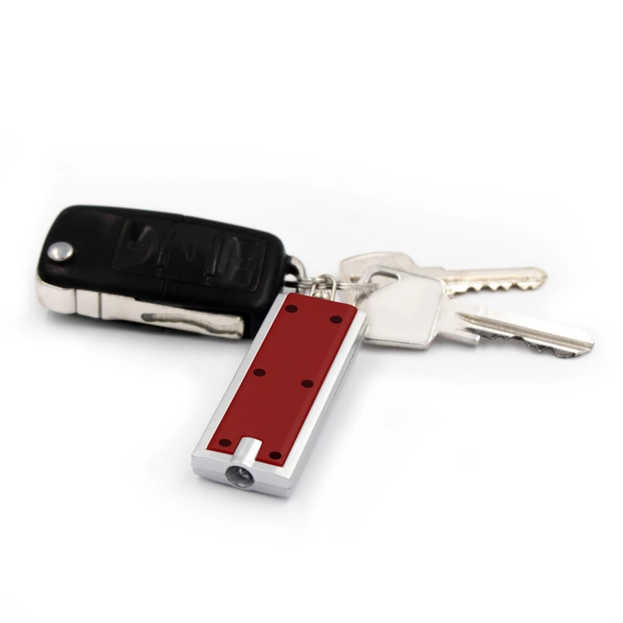 1 LED lamp with a metal ring for attaching to keys and special space for personalization, product made from ABS and plastic