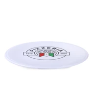 Flat pizza plate with a diameter of 30 cm. Made of porcelain of European origin. Perfect for applying large prints on it.