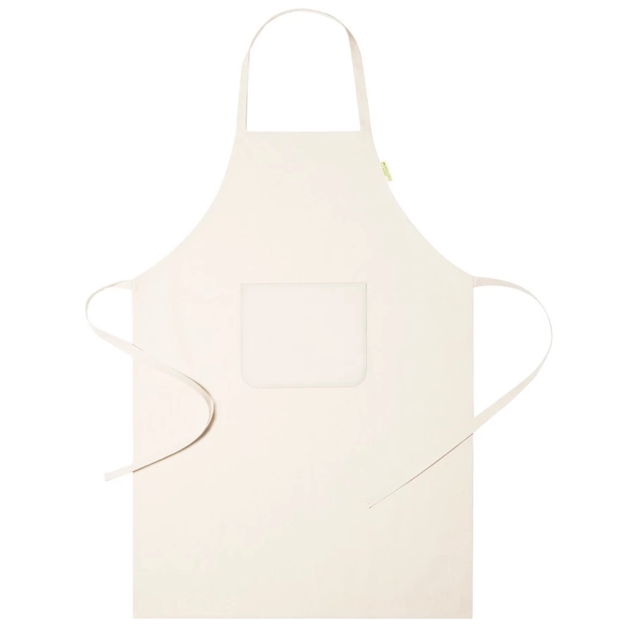 Nature line apron, manufactured in organic cotton material.With front pocket and adjustment straps, fitting under the knee. Organic cotton distinctive in label.