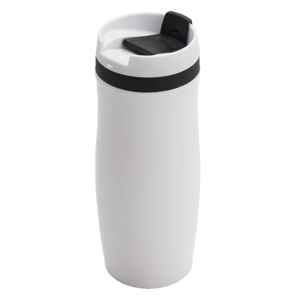 Kubek izotermiczny – o pojemności 390 ml z dwiema ściankami ze stali nierdzewnej, zewnętrzna pokryta lakierem. Wewnętrzna ścianka wykonana ze stali o podwyższonej jakości 18/8. Podstawa kubka z wodoodpornej gumy termoplastycznej TPR. Zamknięcie typu flip up sip. Utrzymuje ciepło do 7 godzin.