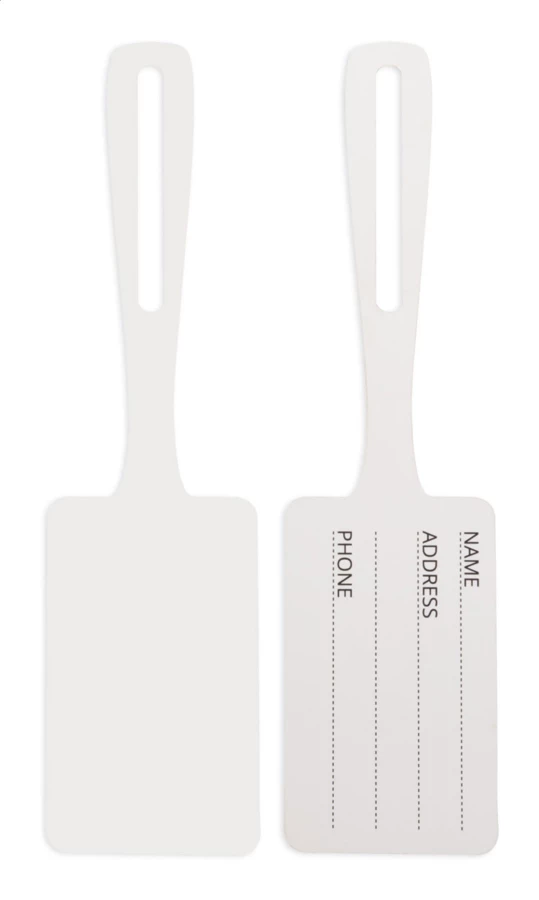 Custom made, water and tearproof paper luggage tag. Price includes full colour printing on front side. MOQ: 250 pcs.