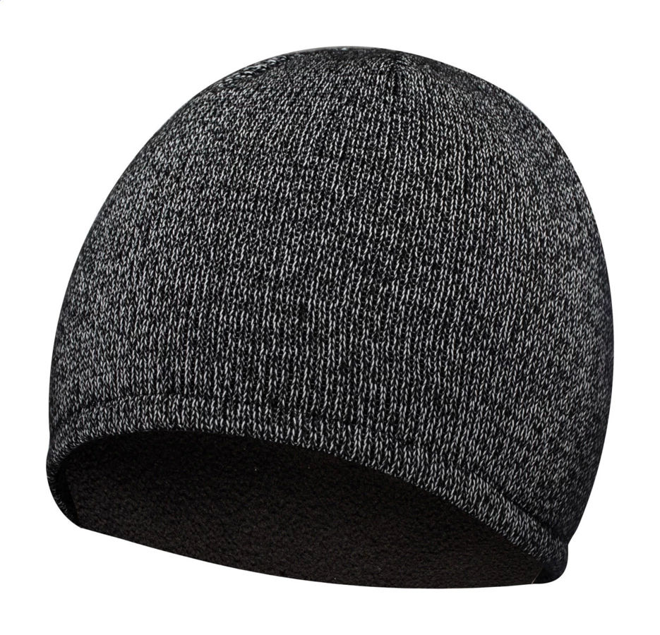 Acrylic sport winter hat in reflective material with polar fleece lining.