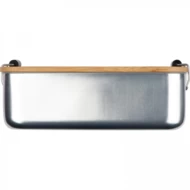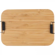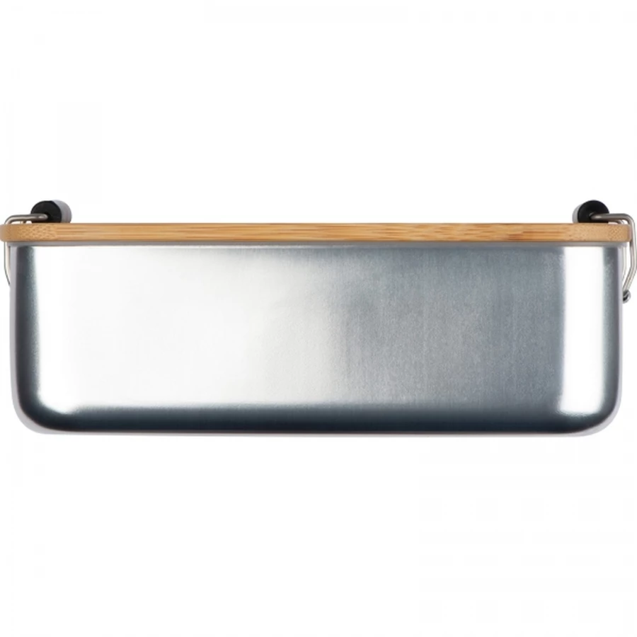 Lunch container made of stainless steel. The bamboo lid has a seal and is closed with a double-sided clamp. The lid can also be used as a cutting board or plate. Capacity 1000ml.
