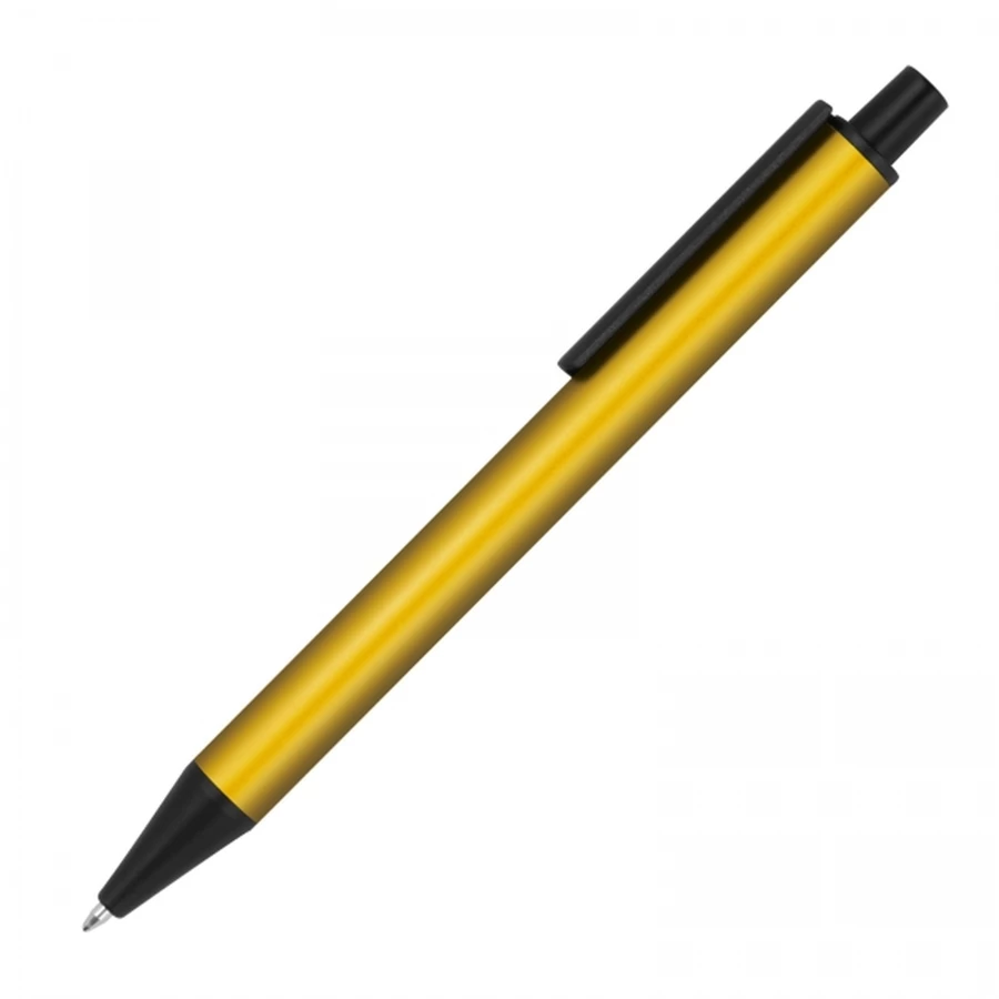 Ball pen made of aluminium in great metallic colours and blue writing large capacity refill.