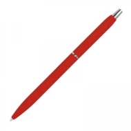 Slim, rubberized metal ball pen in different colors, with silver applications and blue-writing refill. We will engrave your logo to the right of the clip.