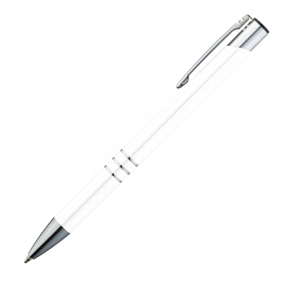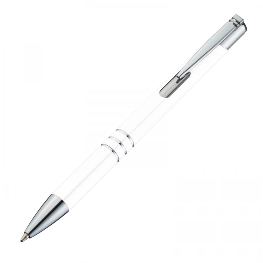 Noble ball pen for small money. This aluminum ball pen has a blue-writing large plastic refill and captivates by its elegant design. We will place your advertising by means of laser engraving on the shaft.