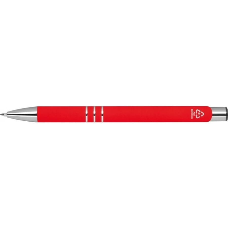 Semi gel pen made of recycled aluminum with a rubberized surface and blue-writing large-capacity refill (semi-gel 0,7mm tip).