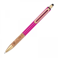 Metal ball pen with golden applications, blue-writing refill and korek grip zone.