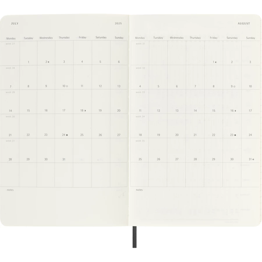 MOLESKINE diary (approx. A5, large) soft cover, daily (400 pg.), ribbon marker and elastic band for closing