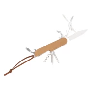 Multifunctional tool, multifunctional pocket knife, with beech wood grip, 7 functions: knife, scissors, bottle opener, corkscrew, file, screwdriver, can opener