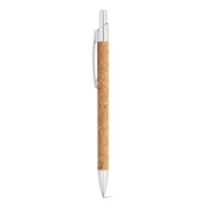 Cork and recycled aluminum (100% rAL) ballpoint with a metal clip. Blue ink. As the product is made from natural materials, the colour and the printing result may vary between products. ø9 x 139 mm