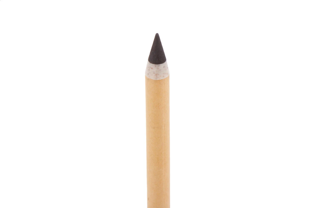 Recycled paper long lasting inkless pen with matching colour cap. With wheat straw plastic and metal alloy tip, which oxidizes the paper. This pen writes similarly to a pencil, and it is also erasable.