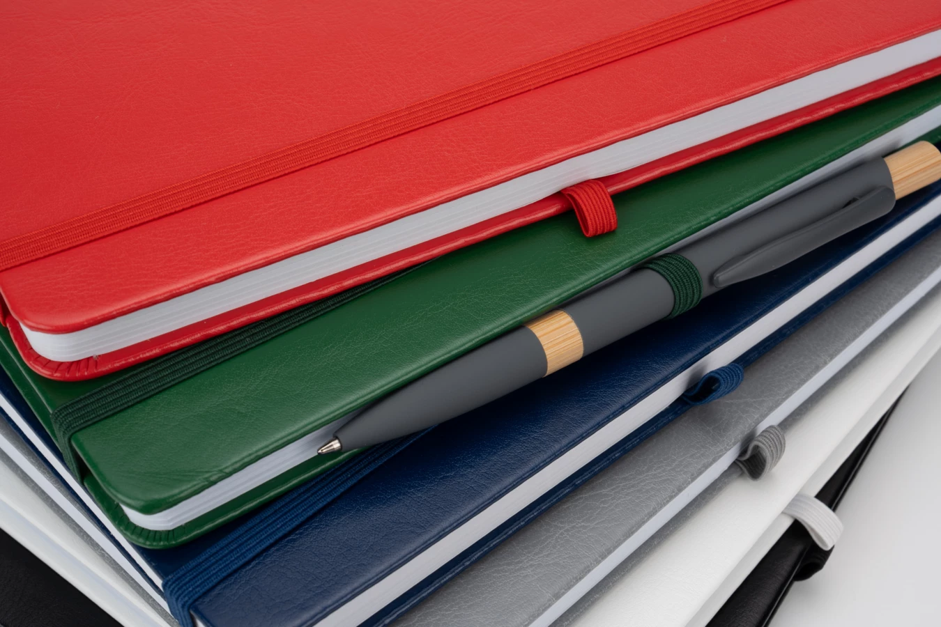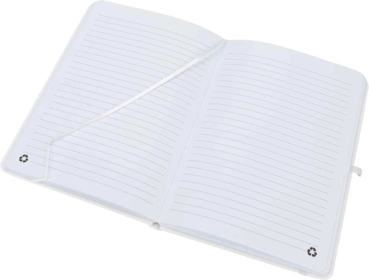 Our recycled PU notebook with 192 lined recycled pages, elastic band to close and pen loop.