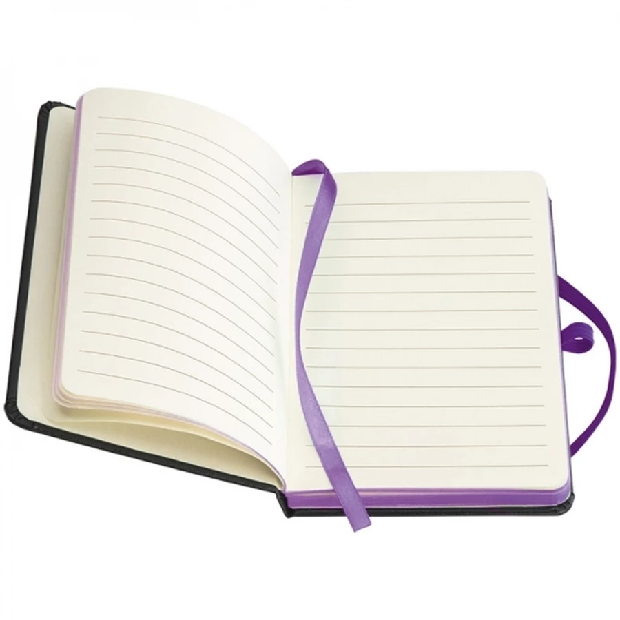 Notebook with black PU cover and 160 lined pages. Elegant look through colorful accents. We will print your logo on the cover.