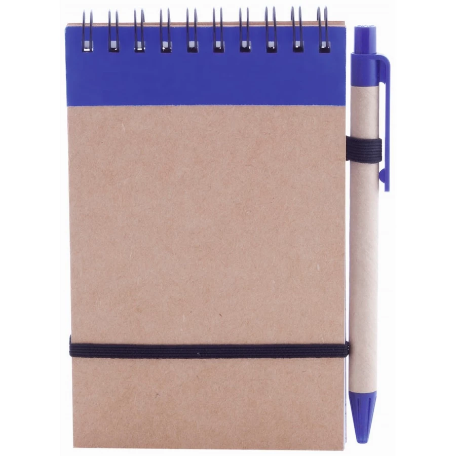 Ring notebook made of resistant recycled cardboard in two-tones. With soft covers, elastic band on the front cover and matching color, recycled cardboard ball pen. Available in striking colours.