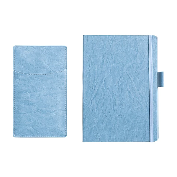 Notes w twardej oprawie z odłączanym etui na telefon, mocowanym na magnesy. 70 kartek w linie. Zamykany taśmą elastyczną. Doskonała propozycja na konferencje i do pracy w biurze. Posiada 25 sztuk karteczek samoprzylepnych, foliowe zakładki indeksujące 5 x 25 szt oraz uchwyt na długopis (nie dołączony)