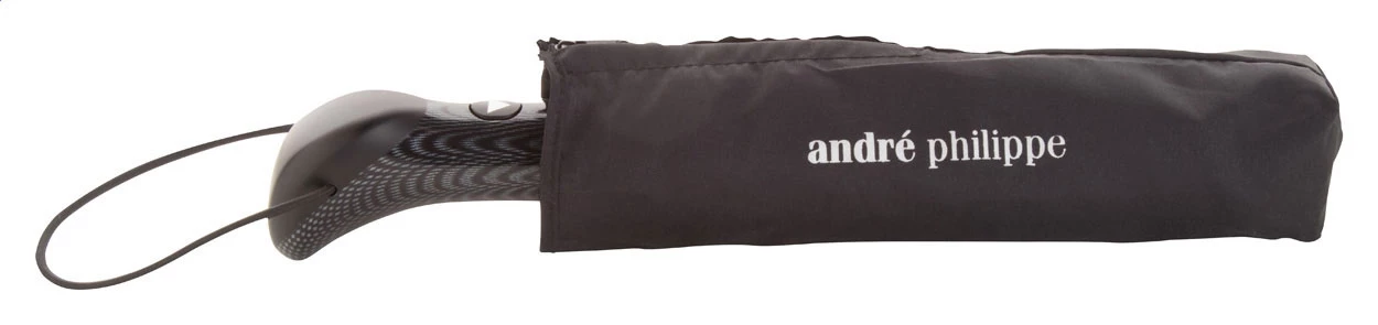 Automatic, windproof folding umbrella with 8 panels, plastic grip, metal shaft and frame. 190T pongee. In branded carry case. André Philippe brand product. Not merchandised in Germany.