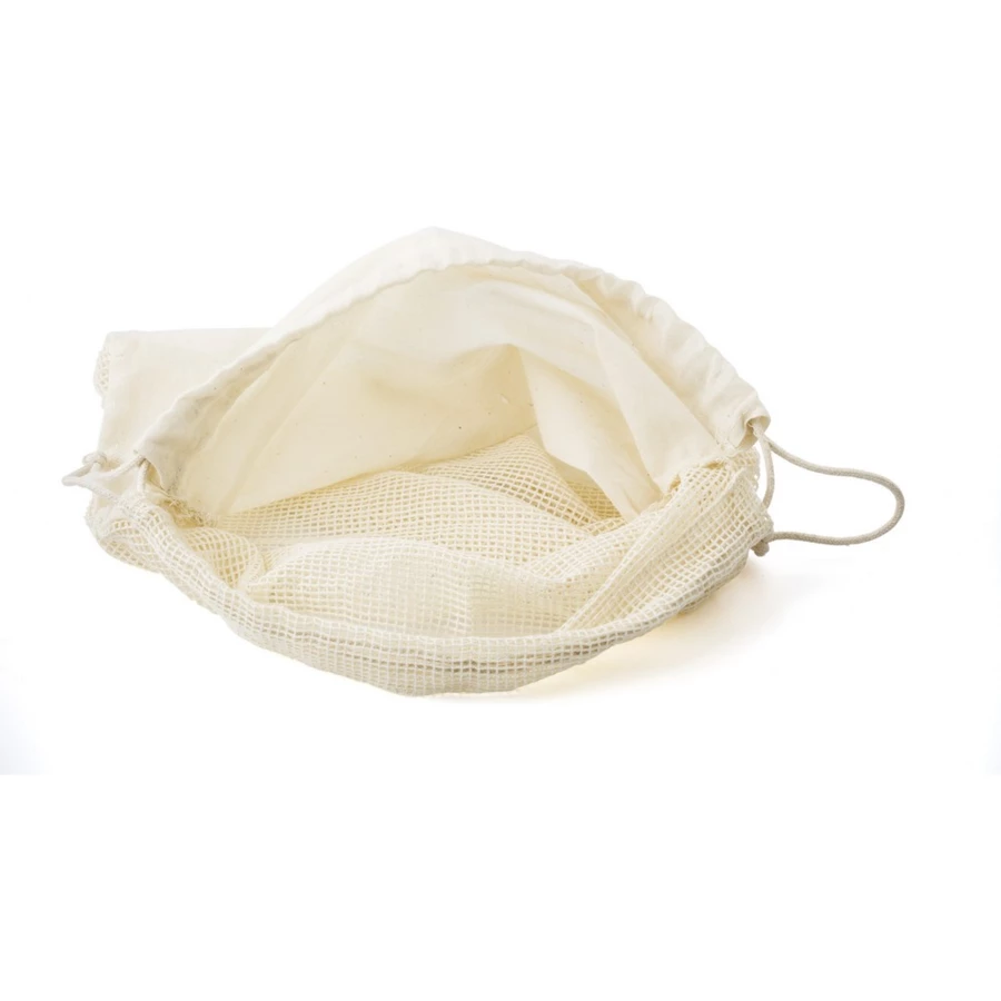 Organic cotton bag for fruits and vegetables, front made of mesh, back made of uniform material