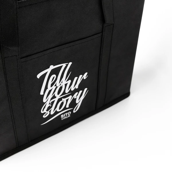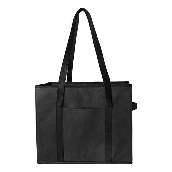 Składany usztywniany organizer samochodowy z długimi wygodnymi uszami i bocznymi uchwytami. Z boku kieszonka.