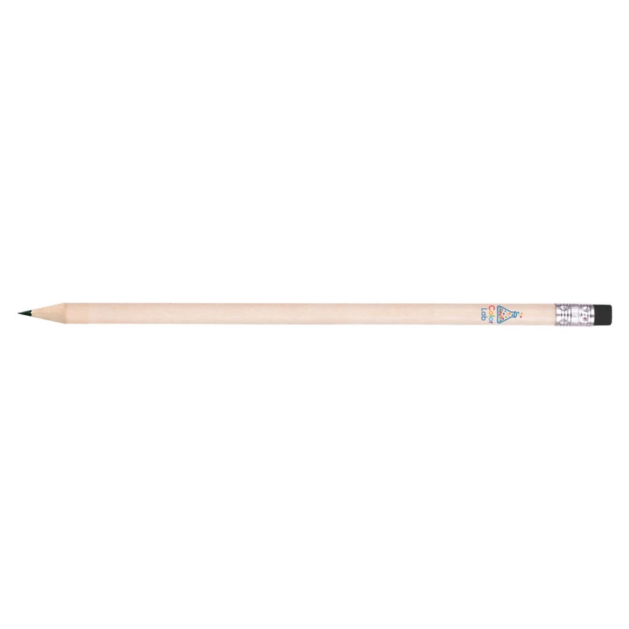 Pencil with eraser, comes with a sharpened tip, product made of wood