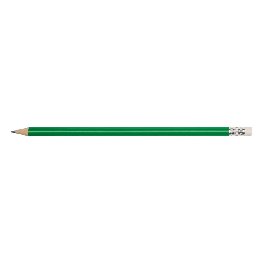 Pencil with eraser and coloured barrel, comes with a sharpened tip, product made of wood