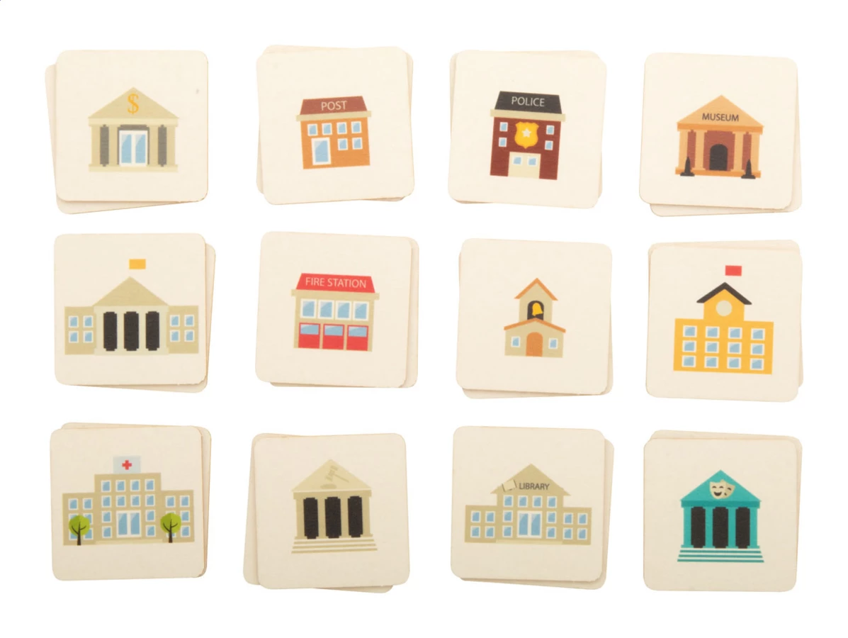 Paperboard memory game with thematic motives in custom paper box. With 24 tiles (40x40 mm). Price includes full colour print on backside of all tiles and a full colour printed box. MOQ: 100 pcs.