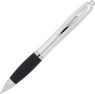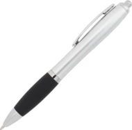 Ballpoint pen with blue writing large capacity refill and color contrast soft touch grip zone. We print your logo on the right side of the clip.