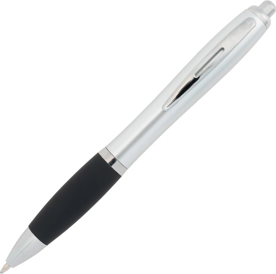 Ball pen with a satin finish and a rubber grip zone, comes with a blue-writing large refill.