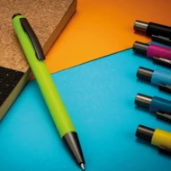 Plastic ballpen with blue writing refill, colored shaft and metal clip. Your advertisement will be printed on the barrel.
