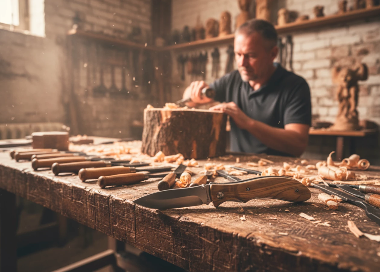 Pocket knife made of metal and wood.