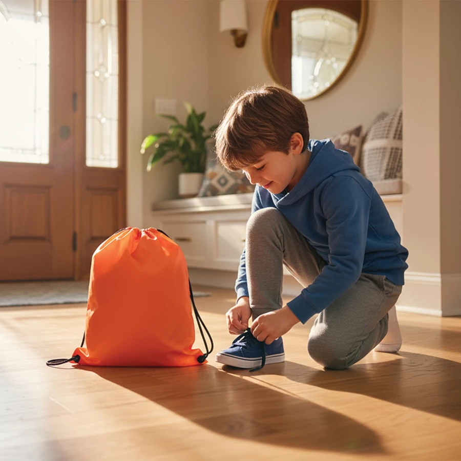 This gym bag made of polyester is suitable for various occasions or carrying your training or dirty clothes. The drawstring can be used as carrying strap at the same time. We will print your logo on one side.