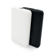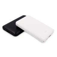 Power bank 5000 mAh with 2 integrated cables: USB-C and micro USB, adapter with micro USB input and plug compatible with iOS devices included, 4 diodes indicating power level, USB-C input, USB-C cable included