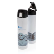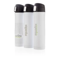This great double wall stainless steel vacuum flask keeps your drink warm for up to 5 hours or cool for up to 15 hours. The lid is lockable and therefore avoids any risk of leaking or spilling. The lid is easy to keep clean for optimal hygiene and is dishwasher safe. The unique design of the flask allows you to drink conveniently and safely with one hand directly from the flask. The size of the flask is suitable to place in any car drink holder. Made with RCS (Recycled Claim Standard) certified recycled materials. RCS certification ensures a completely certified supply chain of the recycled materials. Total recycled content: 76% based on total item weight. BPA free. Capacity 450ml. Including FSC®-certified kraft packaging.